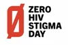 Bright comic-style badge with yellow starburst background and blue outline, featuring the text 'Zero HIV Stigma Day' and a red zero symbol.